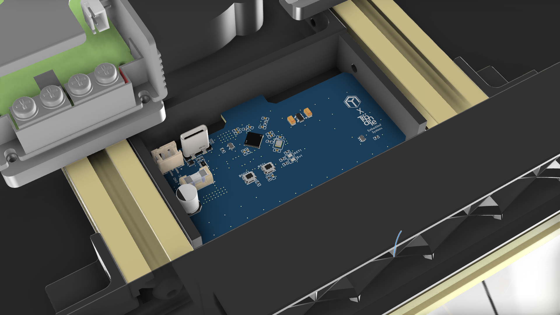 Four-layer control board driving addressable LEDs for decorative and functional feedback.